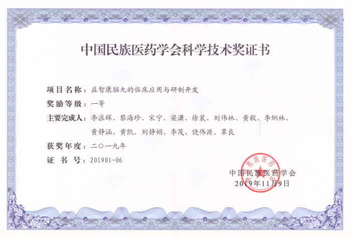 強壽集團此次申報的《益智康腦丸的臨床應(yīng)用與研制開發(fā)》項目經(jīng)過國家相關(guān)獎勵辦法嚴(yán)格評審,最終被評為一等獎,獎勵編號201901-06。該獎項是我國民族醫(yī)藥領(lǐng)域最高級別的獎項。也是在一等獎中唯一一個民營企業(yè)獲獎項目。此次獲獎項目是強壽集團在民族醫(yī)藥領(lǐng)域上又一創(chuàng)新研究成果,贏得了醫(yī)藥專家及領(lǐng)導(dǎo)們的高度認(rèn)可和好評。
